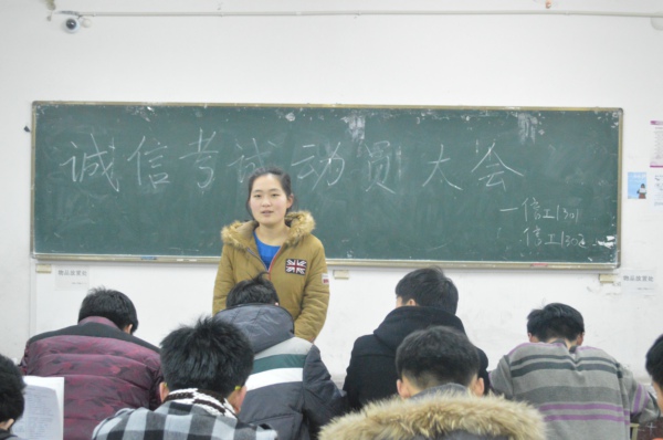 团课上,各班级负责人讲述了考试作弊对自己和他人的危害以及诚信考试的重要性,同时对同学们提出了考试建议和要求:第一、同学们要认真复习所学内容,做好充分的考前准备,保持良好心态;第二、对所学内容做到熟能生巧,融会贯通;第三、严格遵守考试纪律,听从监考老师的安排。同学们纷纷表示,会自觉遵守考试纪律,维护考试公正,以诚信考试为荣,以违纪作弊为耻,在各科考试中不作弊,严格履行自己的庄严承诺,做一个诚实守信的大学生。