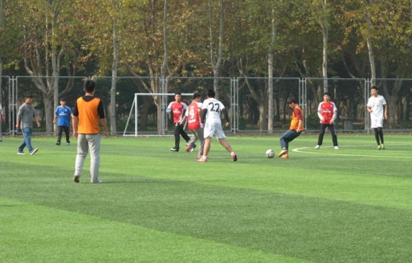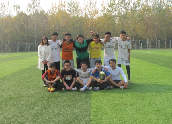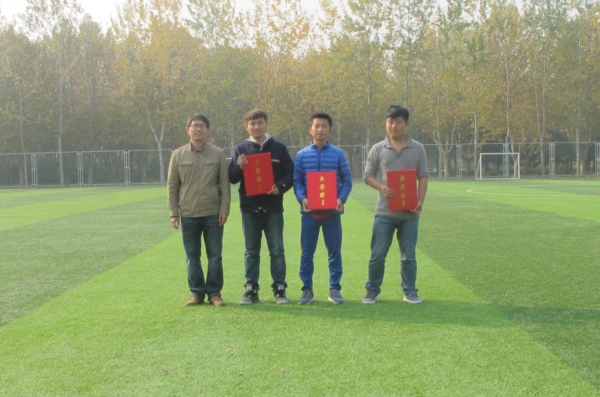 一声哨响比赛正式拉开帷幕。开场15分钟后13级软件代表队率先踢进一球,随后,12级代表队紧追不舍将比分追为1:1平,整个上半场双方展开激烈的角逐,势均力敌。中场休息后,双方队员们又重新投入到比赛当中,下半场双方攻势更加迅猛,防守也做得更加到位,最终12级代表队又踢进一球,以2:1的比分获得本次理信学院足球专业赛的冠军。比赛最后进行颁奖仪式,12级代表队、13级软件代表队、14级物联代表队分获本届比赛的冠亚季军,同时,比赛还评选出了最佳裁判三人,最佳新人、最佳门将、最佳射手、最有价值球员各一人。