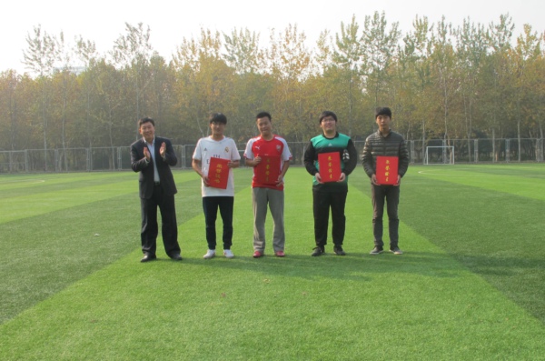 11月10日中午,青岛农业大学理学与信息科学学院在东足球场举行足球专业赛决赛。决赛双方为理信学院12级代表队与13级软件专业代表队。学院团委书记孙杰、正科级辅导员张照辉、辅导员王甜甜观看了比赛并为获奖者颁奖。