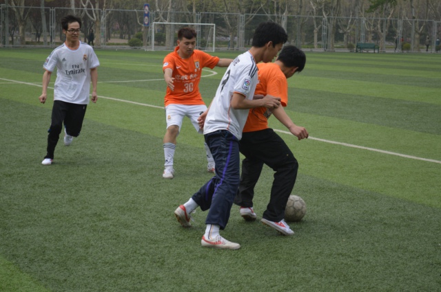 一声哨响拉开了整场比赛的序幕。各专业队员斗志昂扬、奋力拼搏、积极进取,展现出了大学生的青春与活力。球场上,足球队员们激烈拼抢,挥洒激情,每一个带、传、停、射都十分专业,一次次精妙的配合和精彩的射门点燃了场边观众的激情,为两支代表队的助威呐喊声响彻整个绿茵场。各专业队员们以默契的配合、缜密的队形部署,充分彰显了理信学院各班级精诚协作的团队精神风貌。