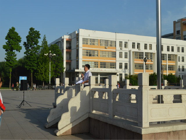 伴随着雄壮的国歌声,英姿飒爽的护旗手护卫着鲜艳的五星红旗,迈着矫健的步伐走向升旗台。升旗手挥动右臂,漂亮利索地划出一道弧线,五星红旗冉冉升起。升旗仪式由此正式拉开帷幕。随后,杨书记作重要发言,主要提出以下三点内容:一是强调学习价值观的重要性,要求各班级团支书积极完成督促工作;二是禁烟防火安全问题,希望同学们自觉遵守纪律,保护自身安全;三是诚信考试问题,提出在期中考试有舞弊现象的同学要引以为戒,刻苦学习,遵守校规校纪,以优异的成绩来回报社会和家庭。另外,杨书记还倡导大家积极考研,不断提升自身素养与社会竞争力。