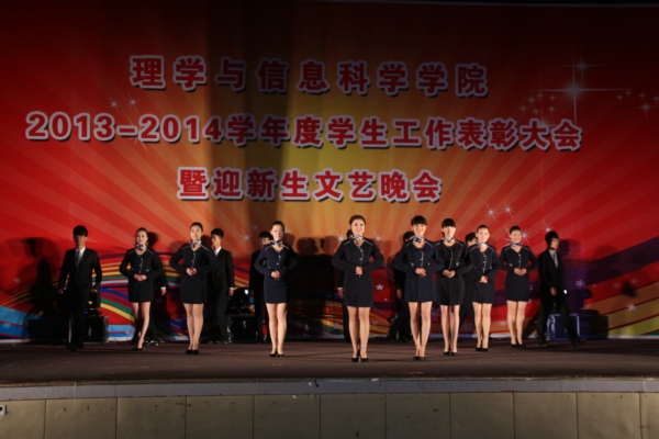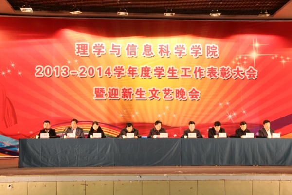 12月6日晚,理学与信息科学学院2013-2014学年学生工作表彰大会暨迎新晚会在文体馆隆重举行。校党委委员、纪委书记马端忠,招生就业处处长董玉河,团委书记初磊,学生处副处长张胜芳,学院党委书记李言照,党委副书记、副院长杨凯,副院长陈龙猛,团委书记孙杰,各班班主任及辅导员老师出席此次大会。理信学院全体同学参加本次大会。
