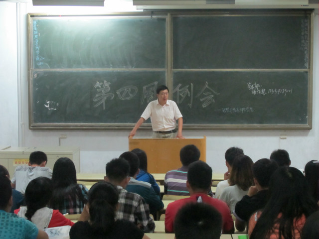 9月12日,理学与信息科学学院在B102召开第四周例会。团委书记孙杰参加了本次例会。 会上,孙书记对11、12级的学生干部工作提出要求,强调学生干部要有奉献和吃苦的精神,作为一名学生干部,要承担起自己的责任,要做好自己分内的工作,各部门的任务、班级的事物,不能耽误、不能怠慢,做好一名合格的学生干部。最后,孙书记强调13级新生军训结束后,正式开始大学生活,作为学长学姐,一定好起好带头作用、表率作用,让新生更快得融入大学新生活。 本次例会,让学生干部更加明确自身的职责,做好工作,为今后的发展打下基础。