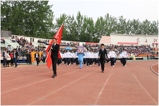 4月28日上午8时,青岛农业大学第三十九届运动会在五环体育场隆重开幕。理学与信息科学学院党委副书记、副院长杨凯,团委书记孙杰、正科级辅导员刘艳妍、辅导员王甜甜、刘菲老师出席了此次开幕式。