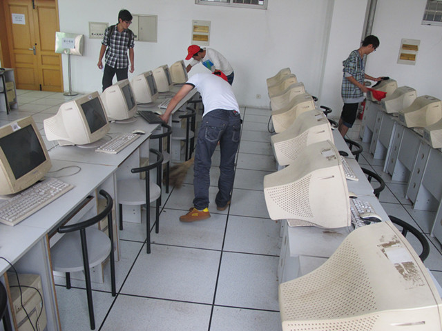 为了给计算机二级考试创设一个良好地考试环境,营造和谐清新的考试氛围。9月13日中午,理学与信息科学学院学生会资助管理部在信息楼组织义工对计算机考场进行了卫生清理。