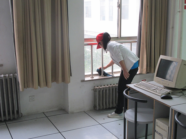 集合完毕以后,同学们先用抹布对所有的键盘、显示器、主机以及电脑桌进行了全面细致的擦拭。紧接着,大家又认真打扫了窗台护栏以及窗台死角。最后,义工们对地面以及桌底垃圾进行了彻底清理。经过大家的齐心协力,整个计算机实验室的面貌焕然一新。