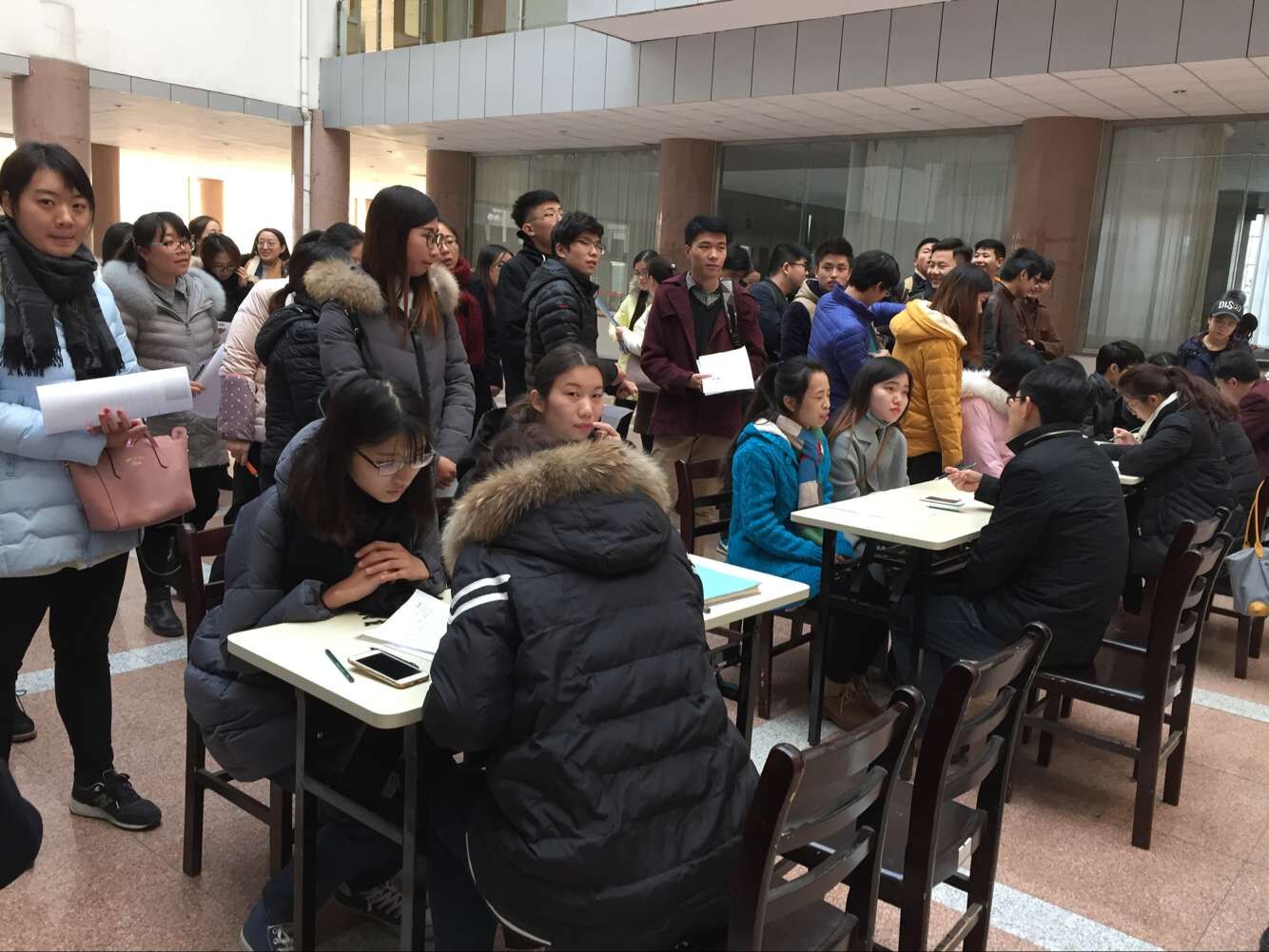 本次咨询会本定于下午3点到5点,由于同学们热情高涨,早早到位,各位指导老师也“打破规则”,于2点20分就开始为同学们进行指导,定于5点结束的咨询会也由于同学们较多,一直持续到下午6点。天黑后活动仍然继续,同学们纷纷打开手电筒照明活动现场,希望老师给予指导。忠于奉献的指导老师不辞辛苦,在冰冷的现场耐心为毕业生进行一一指导,让毕业生们掌握通关技巧,尽可能让更多的毕业生真正制作出属于自己的精彩简历。