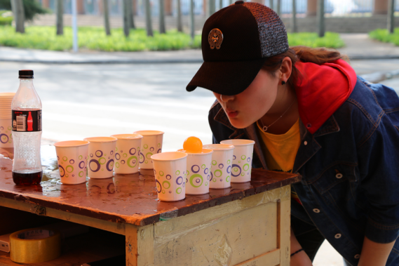 理信社团联合会举办的游戏也是同样精彩。将乒乓球吹过四个盛满水的杯子,同学们都卯足了劲,带着自信与智慧轻松闯关成功。