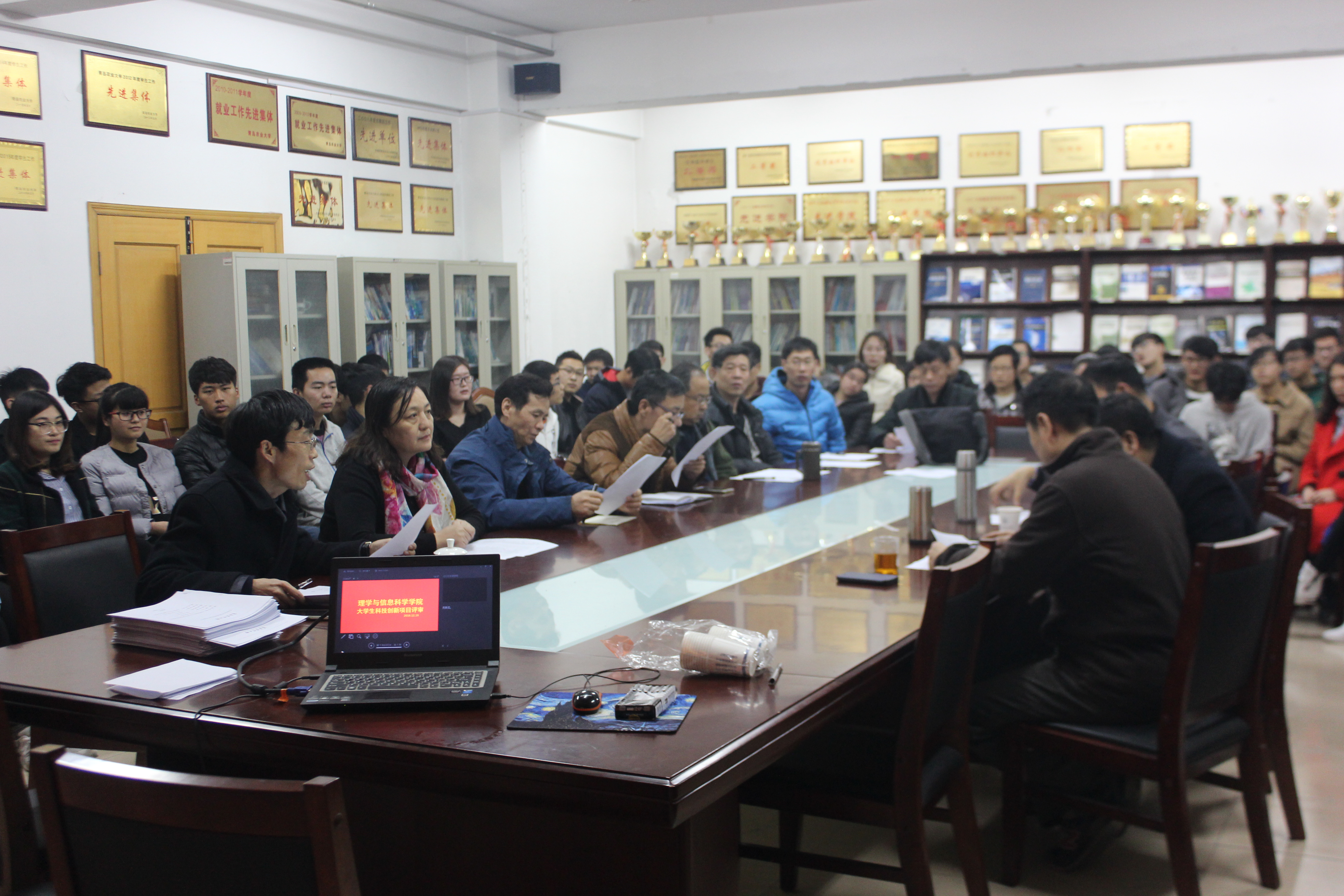 为培养大学生的实践能力和科技创新能力,鼓励和支持大学生尽早地参与科学研究、技术开发和社会调查等创新实践活动,提高学生运用所学知识解决实际问题的能力,12月19日晚,理学与信息科学学院在信息楼215召开了大学生科技创新项目评审会,共有32个项目参与评审,副院长陈龙猛及各评审委员会成员老师参加此次会议并担任评委。