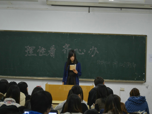 为进一步提高大学生对党的认识。10月27日,理学与信息科学学院组织全院学生在教学区开展“理性看,齐心办”主题团课活动。 各班级同学围绕社会热点难点问题,分别就“公平正义怎么保障、环境恶化怎么扭转、食品安全怎么监管、教育质量怎么提高、道德失范怎么治理、铺张浪费怎么杜绝”等8个方面的问题进行了讨论交流,班级负责人督促同学们认真做好笔记。团课后,同学们纷纷表示会努力学习科学文化知识,正确认识前进中的困难和问题。 “理性看,齐心办”既是一种正确的态度,也是一种科学的方法。通过本次团课活动,鼓励了同学们要从自身做起,学习好科学文化知识,不断提高自身素质,为实现中华民族伟大复兴的“中国梦”贡献自己的一份力量。