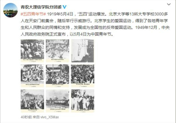 本次学院新媒体互动活动反响热烈,进一步引导学院青年学生继承和发扬五四精神,树立远大理想,增进爱国情感,用实干精神践行社会主义核心价值观。