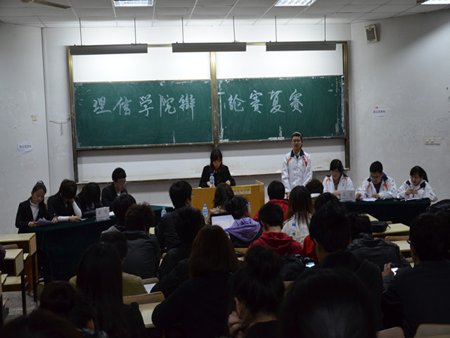 为了丰富同学们的课余文化生活,给大家提供一个相互学习交流和锻炼的平台,锻炼同学们的应变能力与逻辑思维能力,4月15日,理学与信息科学学院举办了以“读书与实践谁更重要”为主题的辩论赛复赛,学院学生会各部部长作为评委现场观看了比赛。本次辩论赛复赛共分为6组,分别在个2个教室举行。比赛分开篇立论、攻辩、攻辨小结、自由辩论、总结陈词五个环节进行。按照预定的程序,在各赛场主席的安排下比赛有条不紊地进行。辩论赛现场气氛都异常激烈,辩手们唇枪舌剑,思维活跃,语言流畅,风度端庄但又不乏幽默 。双方辩手以自己敏捷的思维,深入剖析经典实例,不但充分阐明本方的观点,还犀利的指出对方的漏洞。辩手们唇枪舌战,不甘示弱,现场气氛活跃,掌声此起彼伏.此次辩论赛既丰富了我院学子的课余生活,营造了勤于思考,善于思辨的学习气氛,相信在接下来的决赛中每个队都会再接再厉,创造更加出色的成绩。