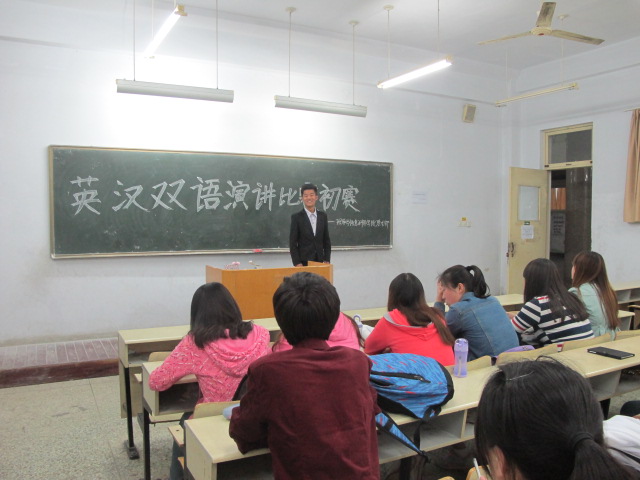 为了促进科技文化节各项活动的顺利开展,5月6日,理学与信息科学学院在教学区开展英汉双语演讲比赛初赛。