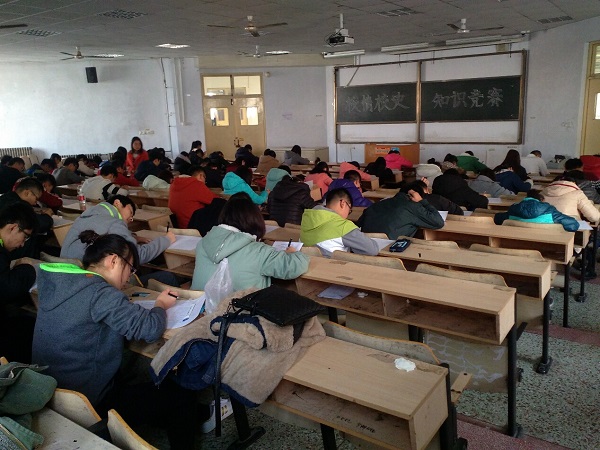 11月29日下午青岛农业大学理信学院“校情校史”知识竞赛初赛于B402顺利进行。本次活动由青岛农业大学校友总会,共青团青农委员会主办,青岛农大校友志愿者协会承办,理信学院社团联合会协办。 此次活动让更多的同学加深对学校的了解,培养同学们的识校、知校、爱校情怀。同学们竞赛之前充分准备,自发、踊跃的了解学校,感受学校的的历史变迁。笔试中同学们认真答题,笔试后工作人员严格批阅并评分,使初赛公平公正地顺利完成。