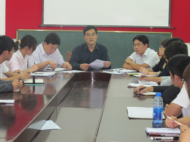 会上,杨书记首先强调做好学生干部一定要做好人、用好权、做好事,要求大家以身作则,认真工作,做好学生的榜样,并指出学生干部要用心、用脑的完成每项学生工作,做一个有能力、有人脉、有知识的大学生。接着,孙书记就十一放假安排制度做出了说明,要求学生会各部门要明确考勤制度,及时汇报各部门的工作进度,学生干部要首先遵守各项规章制度,做好正能量的带头者。张老师强调学生干部应是有政治思想、专业素质、能力素质、心理素质的学生,各部门要团结一致共同组织好学生会的各项工作。刘老师指出各学生干部要增强干部责任意识,带头做好本部门的建设工作,提高学生干部自身的综合能力。