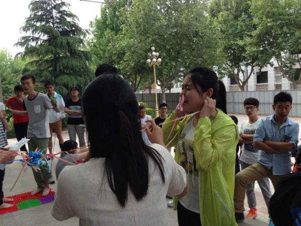 5月16日、17日,理信学院举行“奔跑吧,青春”趣味大赛,各班级派出代表队参与,活动共分为四个阶段,第一阶段比赛在教学区举行,分为竞赛答题、你比我猜两个环节;第二、三阶段淘汰赛分别在西苑篮球场、信息楼举行,包括蒙眼过障碍、两人搭配过障碍投篮、双人夹气球、指压板跳绳、夹夹子比赛。经过前三阶段的比赛,共有8支队伍顺利进入第四阶段在信息楼进行的撕名牌比赛,比赛中队员们协作配合、互相帮助,使整个活动现场紧张刺激。