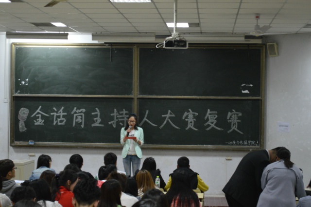 为丰富同学们的课余生活,给更多有梦想有胆量的同学一个展示自己的舞台。5月12日晚,金话筒主持人大赛复赛在教学区D104举行,理信学院赵宣赫、方媛媛两位同学参加了此次比赛。