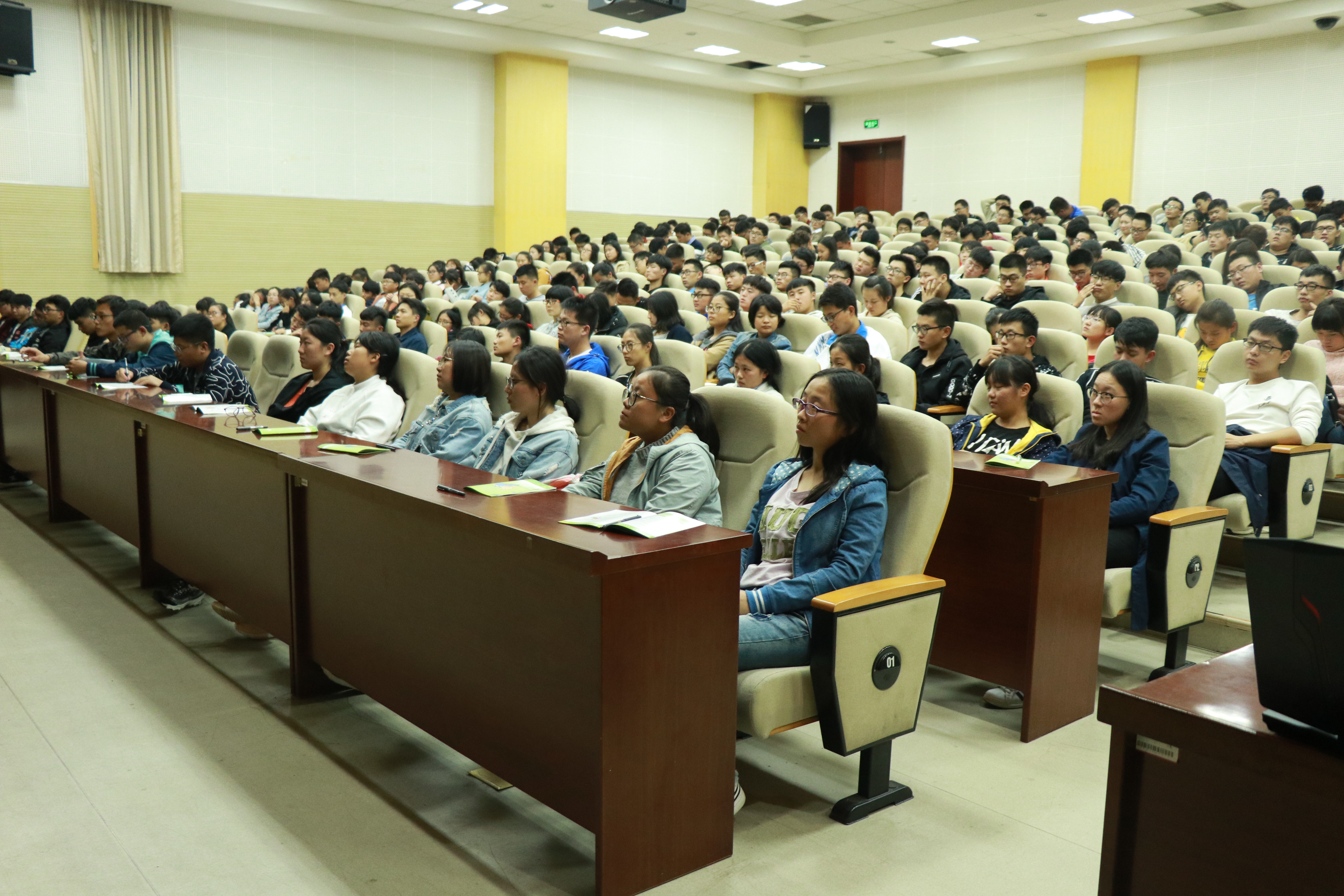 为引导学生热爱生命,热爱生活,学会生存,帮助 17级新生更好的融入大学生活,增强心理健康意识,创建和谐的校园。10月16日晚, 理学与信息科学学院17级部分专业新生在学术会馆参加了以“美丽生命·智慧人生”为主题的第一场宣讲教育活动。后续两场宣讲活动会依次在学术会馆进行。