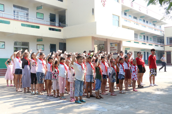 升旗礼毕,国旗手退场后,理信学院社会实践团代表刘振同学发表讲话,他强调暑期实践团队会拿出百分百的热情和信心,服务于村民,用自己的知识和汗水,竭力帮村民解决生活中遇到的困难,与此同时,义务支教也将以孩子安全为核心,带给他们新的知识,拓宽孩子们的视野。