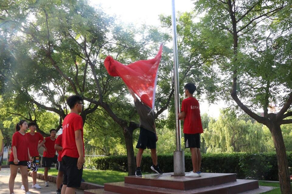 7月24日,青岛农业大学理学与信息科学学院社会实践团队在暑期社会实践基地枣庄市山亭区凫城镇中心小学教学楼前举行了庄严隆重的升旗仪式。理信学院的社会实践队员们与中心小学的孩子们一同参加了本次的升国旗仪式。
