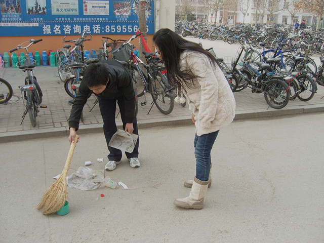 为积极响应校学生会关于清扫美化校园的倡议,展现在校大学生的良好风采,同时为本学期各项工作的顺利开展做好铺垫。3月3日下午,理学与信息科学学院积极组织部分学生对卫生区进行打扫清理工作。在活动现场,学院生活部干事为大家进行了明确细致的分工,分小组按区域进行清扫,各小组的同学热情高涨,高效有序的对各区域的垃圾进行集中处理,充分发挥了吃苦耐劳、团结协作的精神,展现出理学与信息科学学院学生不怕苦、不怕累、不怕脏的精神风貌。