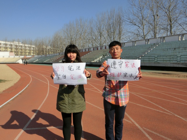 为积极响应学院“弘扬宪法精神 建设法治中国”国家宪法日宣传教育活动号召,理学与信息科学学院软件1403班积极组织班级同学开展法治宣传活动,班级同学以图片创意展示形式宣传国家宪法日。