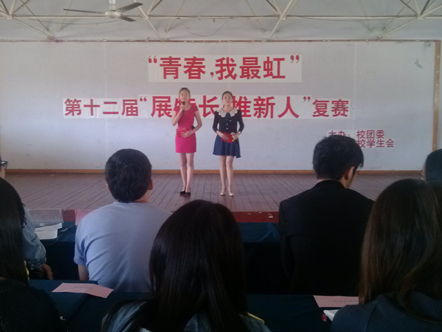 为了展现我院新生的才能,提高我院新生的综合素质。 9月29日上午,由校团委主办的“青春,我最虹”第十二届“展特长,推新人”大赛在润兴餐厅举行。理学与信息科学学院代表队积极参加了本次大赛。
