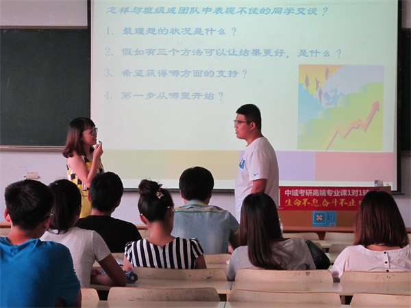 本次培训班是彩虹生涯工作室成员经过多天的前期课件研发及演练才形成的成果,引起了广大学生干部的强烈反响,大家在课堂上积极参与热烈讨论,课堂气氛活泼热烈,老师与同学们之间的交流也进一步加强。课程结束后,还有几个小组的同学仍然意犹未尽,针对各自的工作进行真诚而热烈的交流,培训班取得了良好的效果。