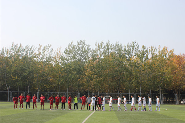 为了加强各学院间交流,给足球爱好者提供一个交流的平台。11月3日,第十一届“青农杯”足球赛小组赛第四场在东足球场举行。对战双方为理学与信息科学学院和合作社学院。学院15级新生来到现场,为队员们加油打气,呐喊助威。