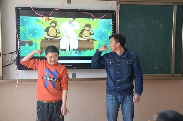 活动正式开始,手指操课上,同学们陪同这些特殊的孩子们一起学习手指操,同时鼓励他们一起勇敢上台表演,在温馨愉快的气氛中与孩子们度过了一堂课。通过这个活动,孩子们之间的关系也变得更加融洽。