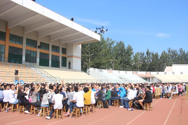 为增强同学的创新意识,9月20日上午理学与信息科学学院于青岛农业大学五环体育场西侧举办主题为“科技律动——与机器人共舞,与航模齐飞”的机器人展示活动。本次活动由学院党委副书记、副院长杨凯,团委书记孙杰,机器人实验室负责人宋洁出席,理信学院13、14级代表以及15级全体新生参与。