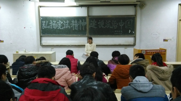 会上,王甜甜老师向大家介绍了国家宪法日的起源、背景及设立的意义。她指出,宪法是依法治国的前提和基础,依法治国有赖于宪法的充分实施,依法治国需要更进一步地完善宪法。我们在首个国家宪法日举行学习宣传教育活动,就要坚决维护宪法法律权威,大力弘扬宪法精神,作为大学生,常常讲要遵纪守法。遵纪是基础,从认真听课做起,从保证每一节自习课纪律开始,相互监督、严格自律。从被动约束到主动养成遵纪的习惯,从杜绝抄袭作业开始到自觉抵制社会不良思想、风气做斗争。同学们表示,作为当代大学生中的一员,我们有义务大力宣传以宪法为核心的中国特色社会主义法律体系,弘扬宪法精神。作为学生干部,更应该在今后的学习生活中遵法守法,弘扬法治精神。