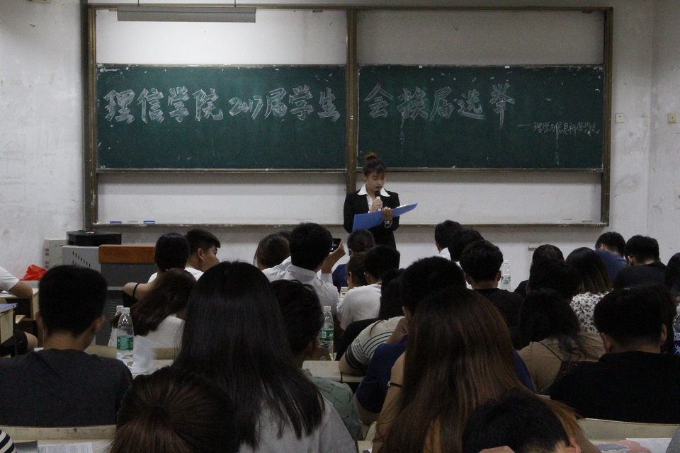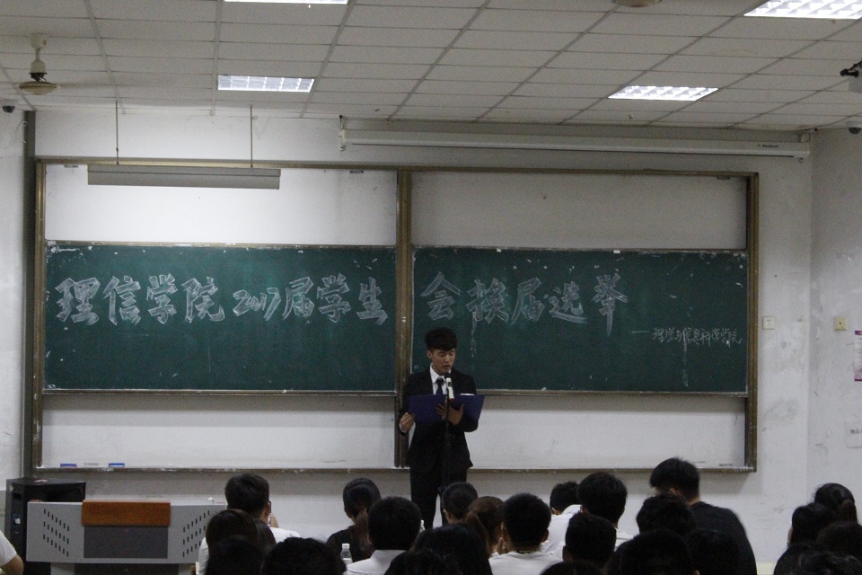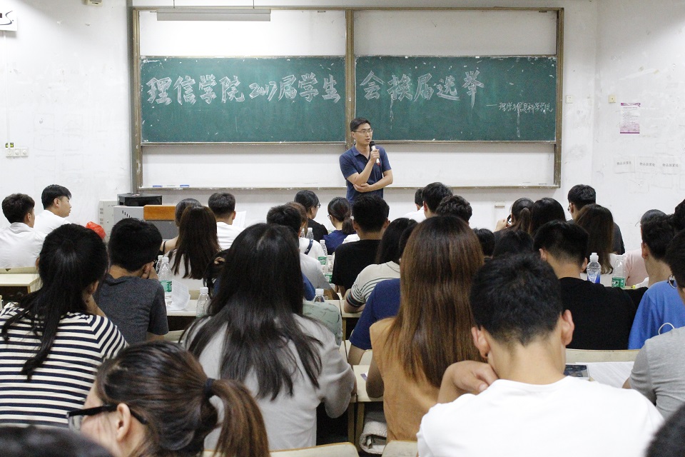 6月25日下午,理学与信息科学学院在教学区召开了2017届学生会换届选举大会。党委副书记、副院长岳斌,团委书记孙杰,正科级辅导员刘艳妍,辅导员刘菲出席此次大会,此次换届选举的评委由在场老师和学生干部组成。