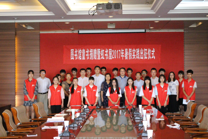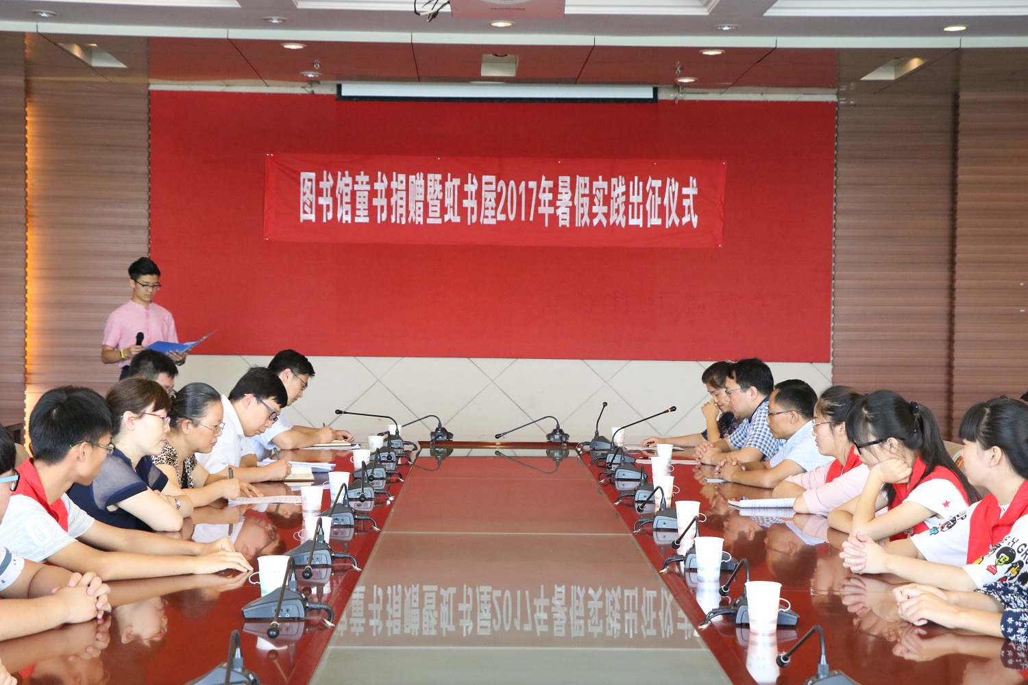 7月11日,青岛农业大学童书捐赠暨虹书屋2017年暑假实践出征仪式在图书馆3楼会议室举行。校妇委会主任、工会副主席张丽,图书馆副馆长、工会主席马启山,理学与信息科学学院党委副书记、副院长岳斌,团委书记孙杰以及虹书屋部分成员一同参加了会议。本次活动由校工会主办,图书馆和理信学院共同承办。