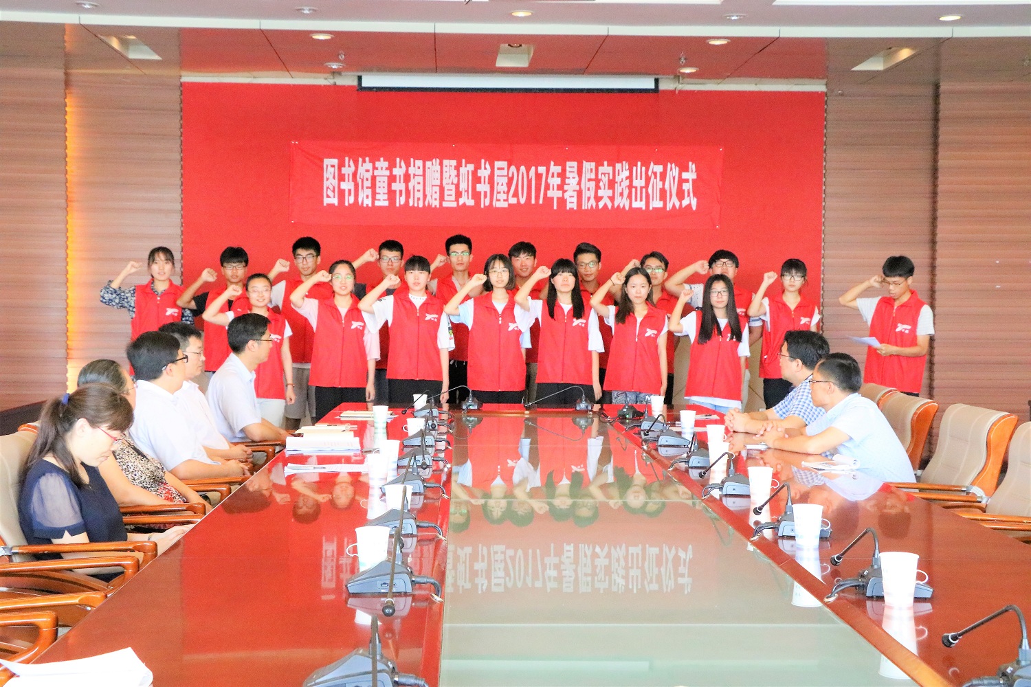 在领誓人与小虹客们庄严响亮的宣誓声中,此次青岛农业大学童书捐赠暨虹书屋2017年暑假实践出征仪式圆满结束。