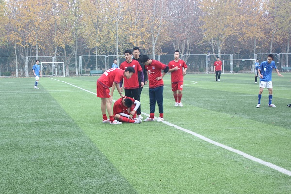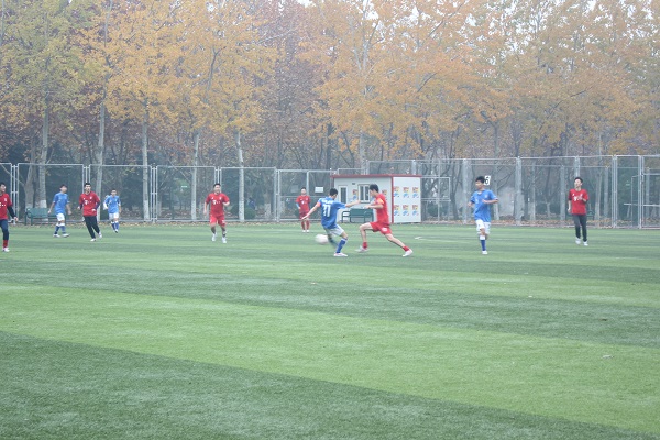 随着裁判的哨声吹响,比赛双方本着“友谊第一,比赛第二”的原则展开了激烈而友好的竞争。理信学院的队员们身着红色队服,驰骋在赛场上,每一次传球都展现着彼此间默契的配合,足球不时在空中画出一条优美的曲线。场地外的观众凝神关注着这场比赛,不时为队员们加油喝彩,为每一个精彩的瞬间鼓掌。在比赛过程中,有队员不小心摔倒在地,其他队员赶紧停止了动作赶过来探看队友是否受伤,天气虽冷,人心却因为彼此间的关怀而温暖。经过激烈的追逐,理信学院最终以3:4惜败于机电工程学院,获得了本次“青农杯”足球赛的第四名。