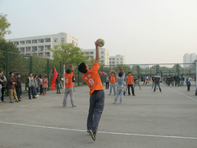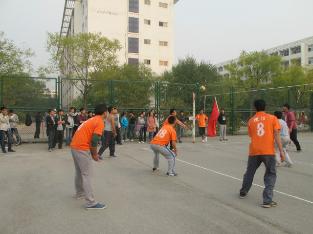 10月22日,理学与信息科学学院与人文社科学院在东篮球场举行排球比赛。