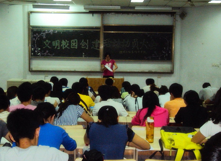 为进一步组织动员全院师生统一思想,提高认识,振奋精神,全力以赴,全面开展创建文明校园活动。理学与信息科学学院于9月8日在B102召开了“文明校园创建活动动员大会”,正科级辅导员张照辉,辅导员刘艳妍、孙海涛,08、09、10级各班班干部,学生会全体成员参加了此次动员大会。