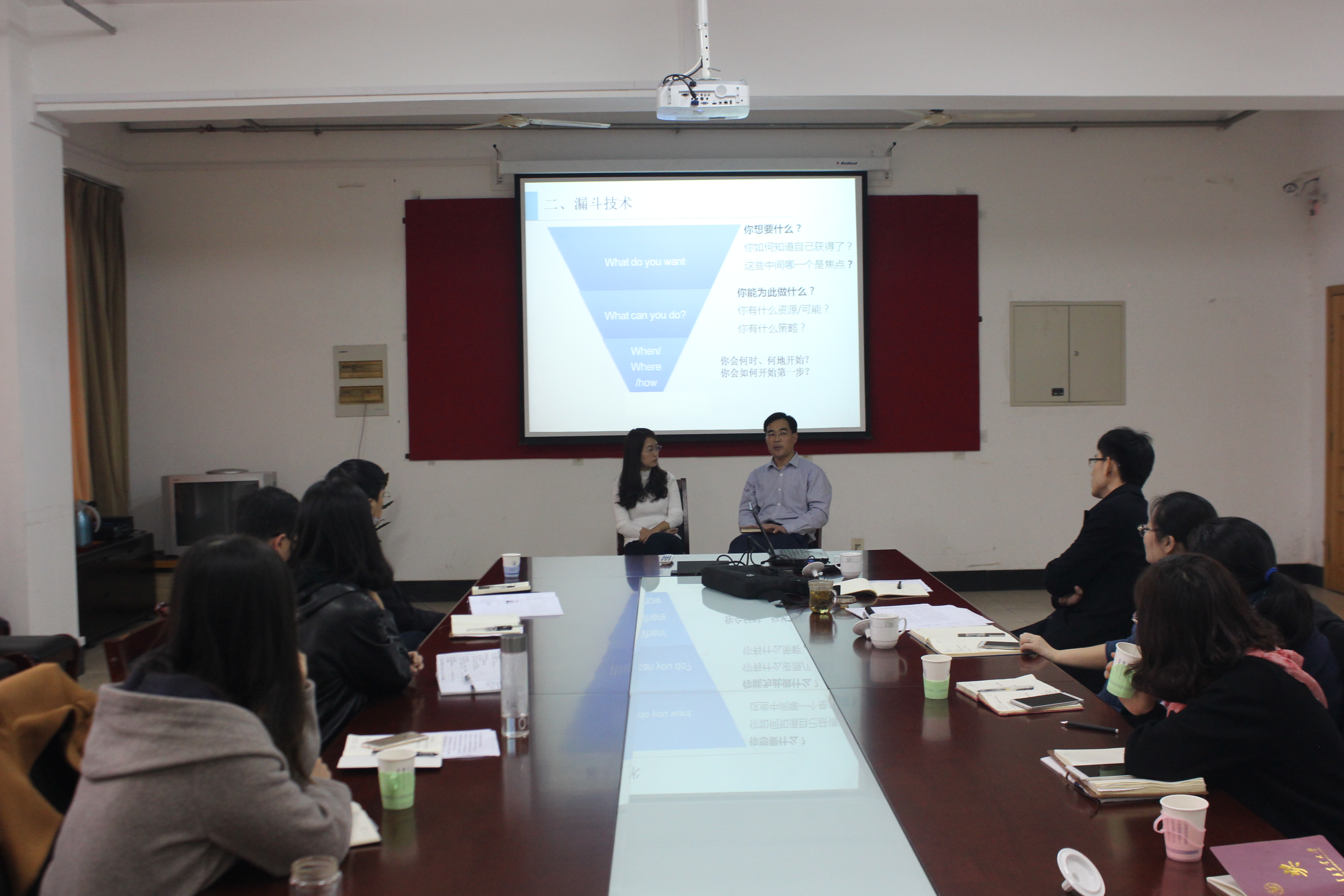 “一名大二同学开店赚钱,学习成绩落千丈,但他对成绩毫不在乎”;“一名学生会干部因工作原因占用了大量学习时间,导致与奖学金无缘,而同时在工作中同学们也对她产生了一些误解,她感到非常委屈”......如果你是他们的辅导员,你如何与他们谈心?针对这些辅导员日常工作中面临的问题,本次工作坊由具备全球生涯教练(BCC)资格的三位老师由“教练技术”引入,对比了传统的谈话方式和“教练”式的谈话方式,引出了新的育人理念,向大家介绍了教练技术的“四大信念”-“people is OK”、“每个行为的背后都有积极意义”、“人们已具备他们需要的所有资源”、“人们有能力做出改变”,教练技术的六大行为准则“信任、倾听、聚焦、好奇、正向、零建议”,让大家对教练技术有了基本的认识,而针对具体应用以及学生工作的特点,抛出了最实用的“漏斗技术”和“五大工具箱”,讲解了沟通技巧的改善,让谈话更加的有效。现场的演练及讨论交流,让大家对“教练技术”在辅导员谈心谈话中的应用有了更直观的认识,大家纷纷表示利用“教练技术”与学生谈心谈话,打破了辅导员以往学生工作中传统的说教方式,是一次理念及方法上的突破,将在以后的工作中多多尝试与使用。