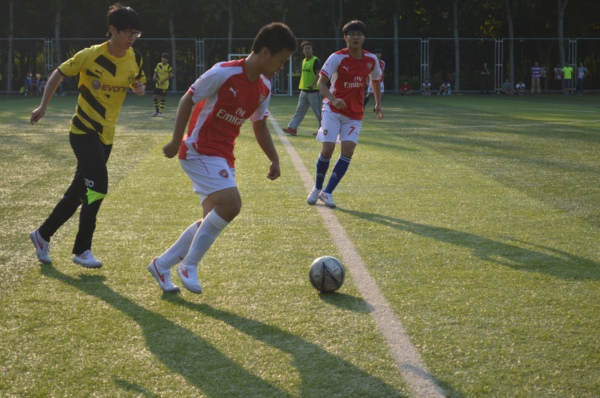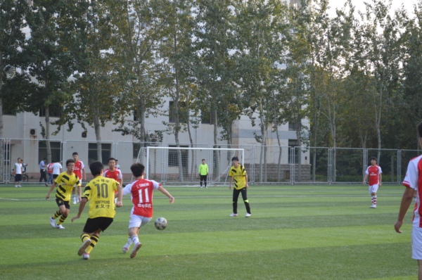 比赛前,完成赛前准备活动的理信球员们显得斗志昂扬、蓄势待发。随着哨声响起,球员们迅速进入状态,开始了精彩的对决。赛场上双方球员们迅猛的攻势,出色的防守使得现场观众们热血沸腾,欢呼和呐喊声也使得现场的气氛更加热烈,理信球员们默契的配合和高超的球技慢慢将比赛推向了高潮。最终,理信学院以2:0的成绩赢得本次比赛的胜利。