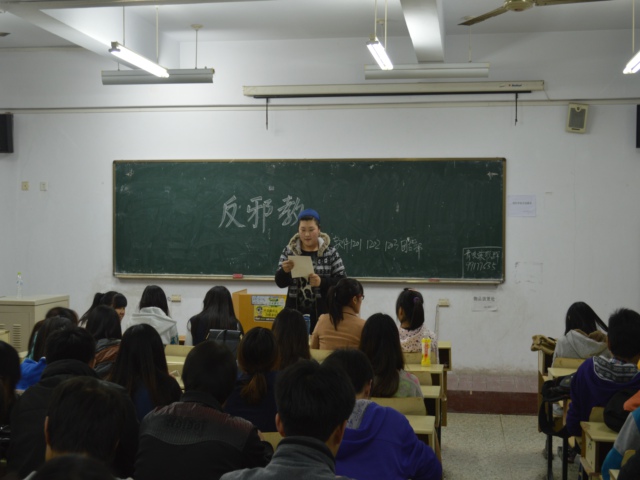 为了进一步增强学院同学的精神文明建设,建设和谐校园。11月3日晚,理学与信息科学学院组织全院学生在教学区开展“反邪教”主题团课活动。