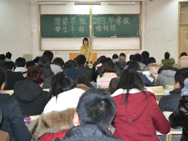 为了进一步提高学生干部的管理能力,提升我院学生干部的思想理论水平和工作能力,2月23日下午,理学与信息科学学院在教学楼D101、D102举办了2013学年寒假学生干部培训班开班仪式。学院团委书记曹银娣出席了本次培训班开班仪式,全体学生干部参加。