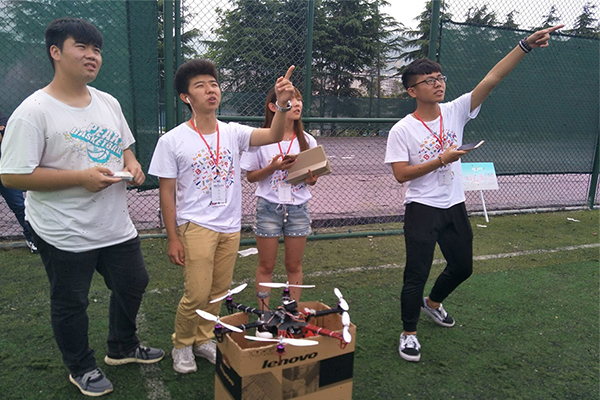 无人机绕桩项目则与投弹项目不同,它极度考查参赛者的反应速度与绕桩飞行的避障操作能力,实验室的董芳春与赵建童二人早已熟悉规则和技巧,在听到哨声后立即进入状态,熟练地操作着无人机穿梭在木桩中,稳定与速度并存,最终以38秒的优异成绩获得了无人机绕桩赛项目一等奖。 近年来,理学与信息科学学院一直致力于培养高素质、全方位发展的应用型高级专业人才,注重学生实践创新能力的培养,为此学院特设电子信息工程(机器人与人工智能方向)专业,将于2017年进行招生。