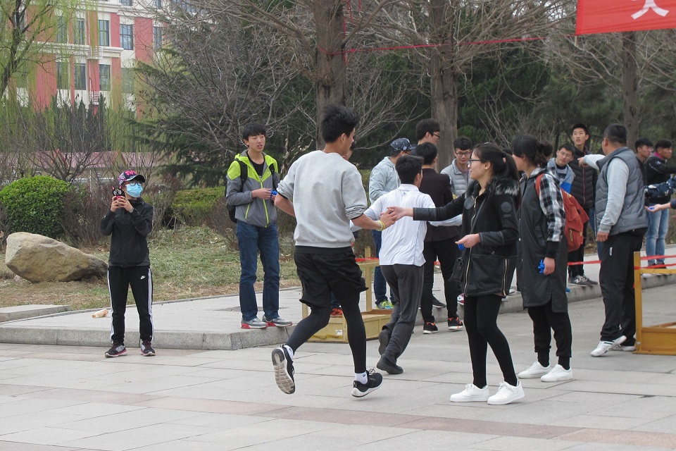 一直从事后勤保障工作的来自理信学院学生会各部门的工作人员也是越野赛中一道靓丽的风景线,在每个补给点都能看到他们的身影。