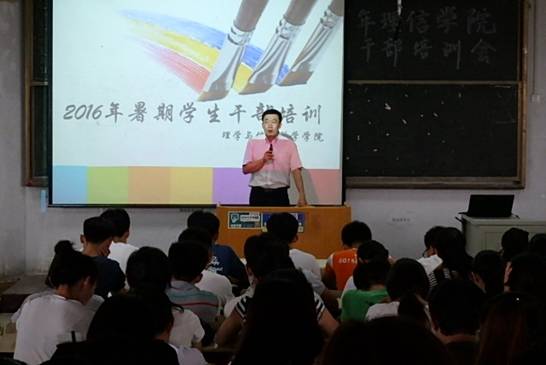 为提高学生干部的整体水平及综合素质,8月20日,理学与信息科学学院于教学区进行了2016暑期学生干部培训,此次培训由理信学院团委书记孙杰,正科级辅导员张照辉、刘艳妍,辅导员刘菲出席,14级、15级全体学生干部及党员参加。