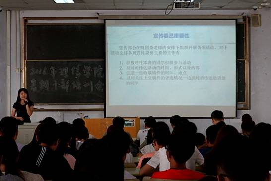 在本次培训中,孙杰老师、张照辉老师经过精心准备,给在场的每位学生干部上了精彩而有意义的一课。两位老师分别从怎样提高自身素质、如何提高办公速度等方面详细地提出了作为一名优秀的学生干部所需要的基本要求:即守时守纪、以身作则、严谨自律和主动积极的意识;和学生干部必须提高的“能力”,即大胆创新、书写表达技巧、综合能力和为人处事的能力以及办公能力。