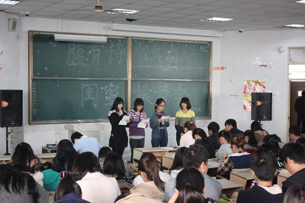 11月2日,青岛农业大学理学与信息科学学院组织大一新生在教学区D区举办了“腹有诗书气自华”闺蜜读书会比赛。