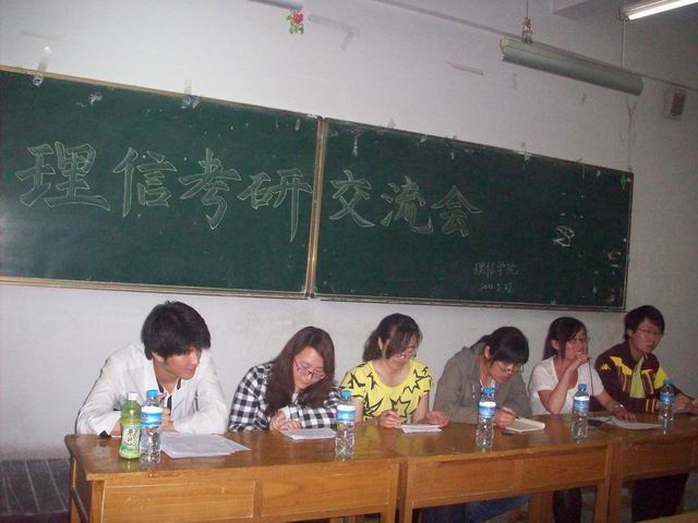 5月28日晚,理学与信息科学学院在教学区C111教室召开了考研交流会,会议邀请了2011年成功考取硕士研究生的六名学生代表参加。