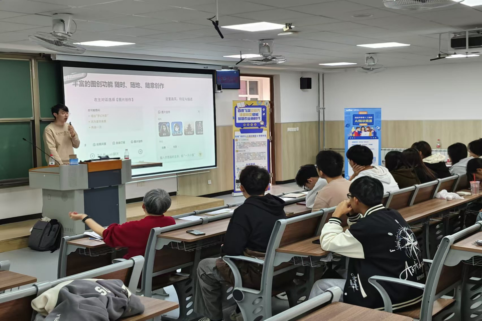 讲座伊始,吴博群详细讲解了人工智能的发展历程,从最初的萌芽期到如今的生成式AI时代,每一个阶段都为人工智能的进步奠定了坚实的基础。随后,他重点介绍了百度在AI领域的最新成果,通过生动的案例讲解和现场演示,学生们充分认识到了AI技术在实际产业中的巨大潜力和重要价值。此外,他向同学们详细阐述目前生成式AI在教育、内容创作和日常办公等领域如何提升效率,展示了这一技术的最新应用。在智慧农业领域,他讲解了生成式AI具有能精准预测作物生长周期、优化种植策略的作用,显著提升农业生产的效率与精准度。同时,他还强调了提示词工程在引导生成式AI产出优质内容中的作用,通过撰写高质量的提示词,进一步优化AI的输出结果,从而为智慧农业的发展提供更加精准的数据支持。
