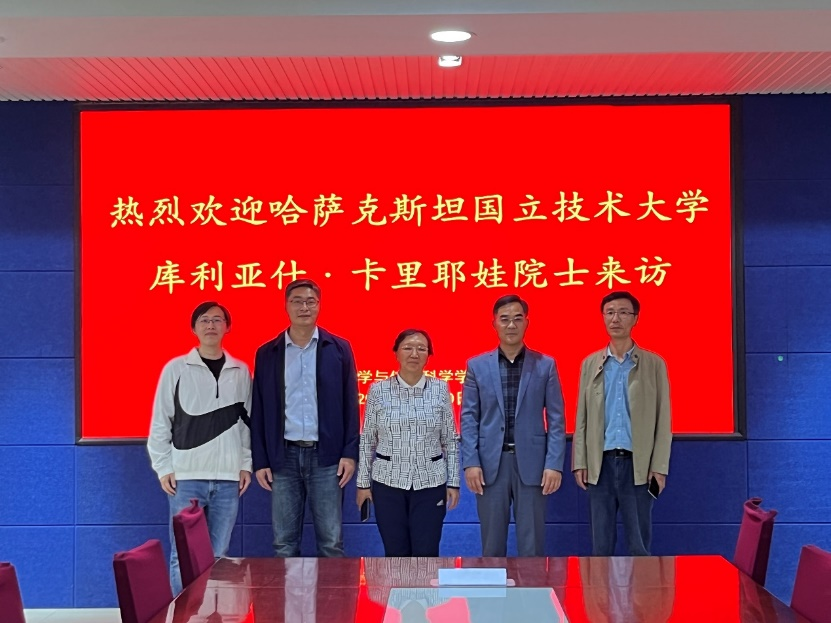 10月30日,哈萨克斯坦国立技术大学库利亚什·卡里耶娃院士到理学与信息科学学院进行访问交流。学院党委书记杨凯,党委副书记、副院长岳斌参加交流会议,学院副院长韩仲志主持会议。
